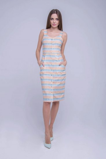 В сарафане можно вечером посидеть в ресторане, посмотреть на местные достопримечательности. Сейчас актуальны сарафаны-футляры с геометрическими рисунками.