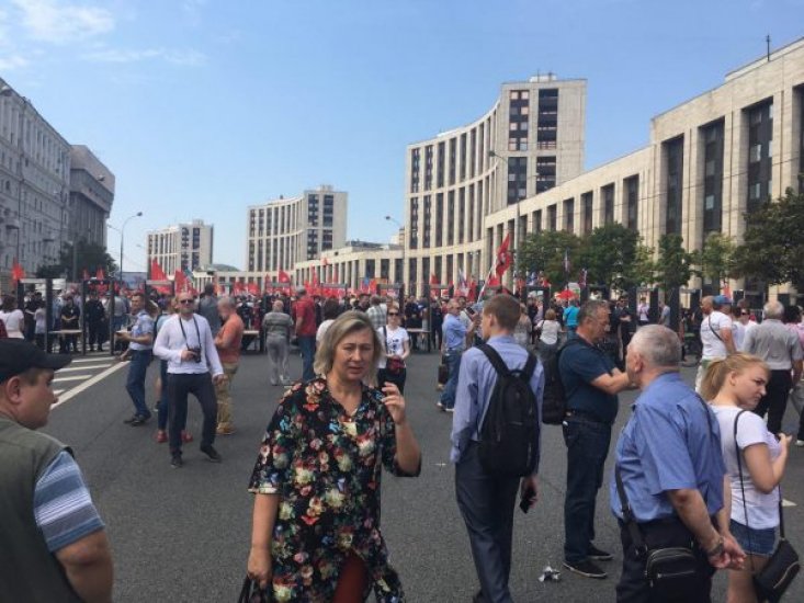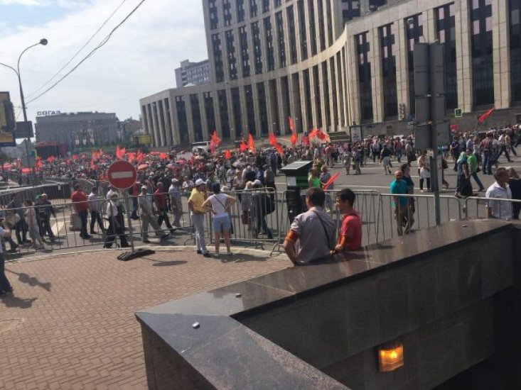 В Москве в 12.00 с улицы Маши Порываевой должно начаться согласованное шествие, которое плавно перетечет в митинг на проспекте Академика Сахарова. Люди скандируют: «Руки прочь от наших пенсий» и «Пенсионная реформа — геноцид народа». Отдельную колонну от партии КПРФ возглавит Геннадий Зюганов.