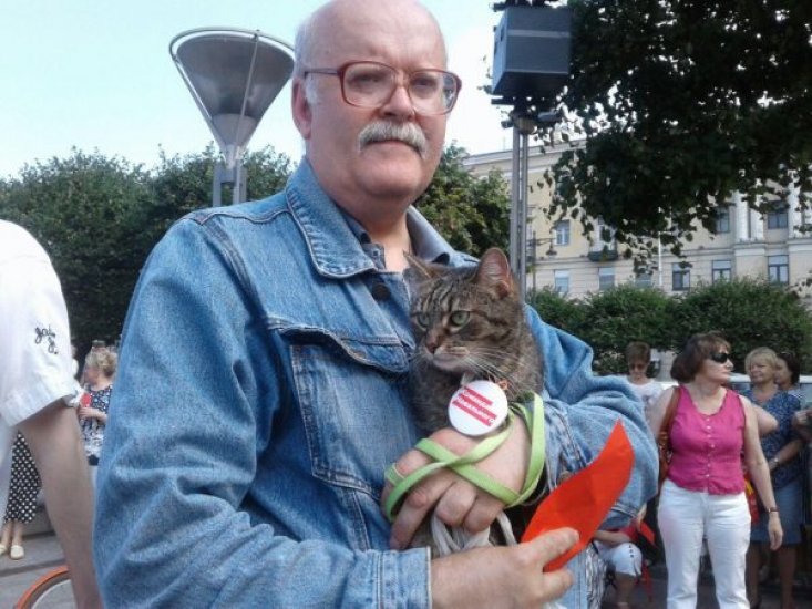 На митинге в Санкт-Петербурге собралось около 500 человек и кошка Белка. Она тоже против повышения пенсионного возраста, ей тогда нечего будет кушать.