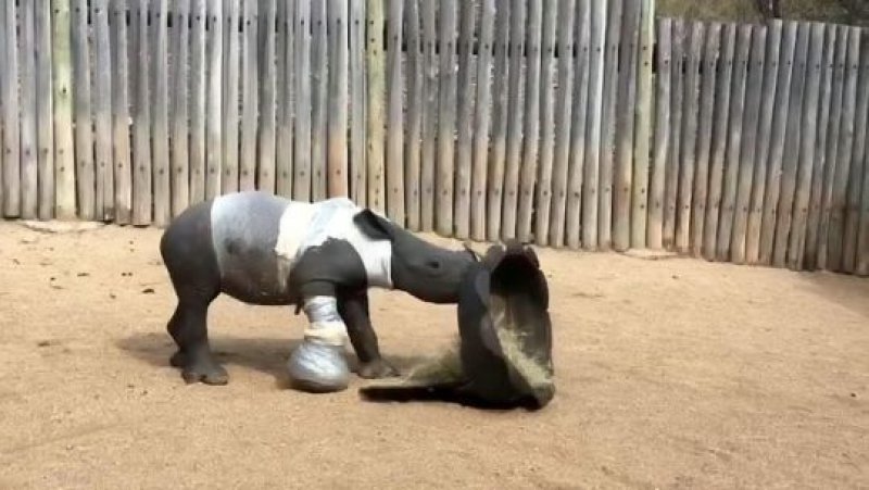 Сразу после обнаружения малыша его доставили в приют для носорогов, где немедленно накормили и напоили, а также начали лечение. Спустя три месяца его раны постепенно заживают, однако маленький носорог продолжает звать свою погибшую маму душераздирающим криком (в дикой природе малыши не разлучаются с ней до трех лет).
