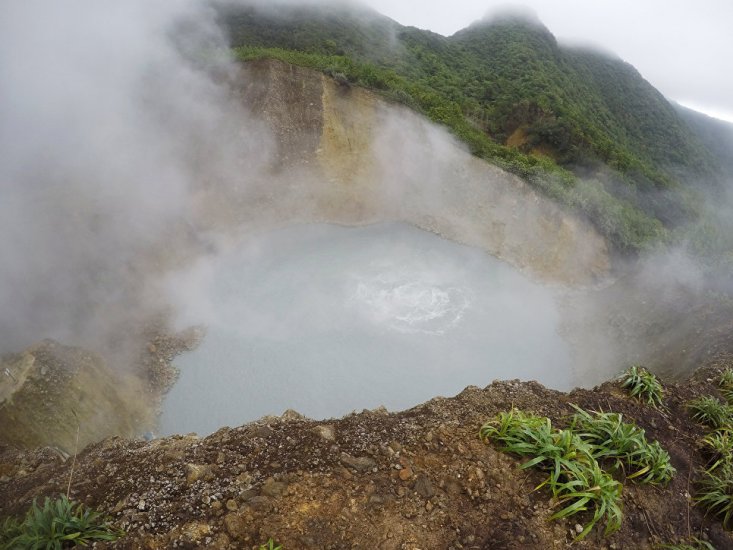Температура воды в этом озере порой превышает 90 градусов, и это второй по величине кипящий водоем в мире. Купаться категорически запрещено, потому что под водой могут бить струи горячего воздуха и даже лавы, а от поверхности часто идет сернистый пар.