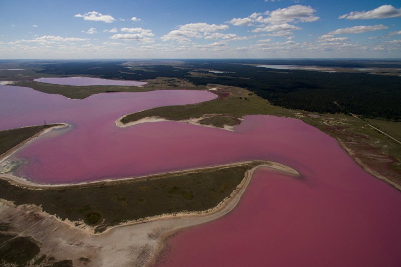 В России есть еще одно розовое озеро, которое за насыщенный цвет именуют Малиновым (также его называют "озером императрицы"). Императрица Екатерина II, когда хотела чем-то удивить иностранных гостей, просила подавать к столу розовую соль из этого водоема. Считается, что вода в Малиновом озере полезна именно из-за высокого содержания соли — примерно такого же, как и в Мертвом море.