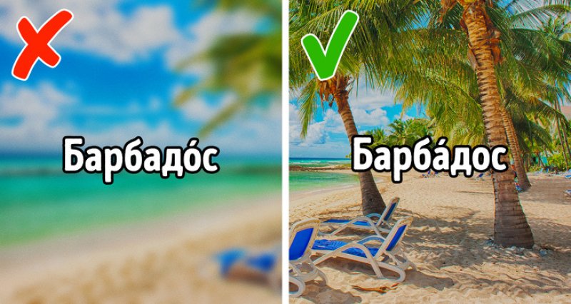 Название этого государства на берегу Карибского моря правильно произносить, делая ударение на 2-й слог: Барба́дос.