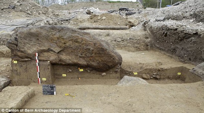 Камень был обнаружен лежащим на боку во время раскопок поселения бронзового века в швейцарской деревне Брайтнахер, к югу от столицы Берна, пишет «Вокруг света».