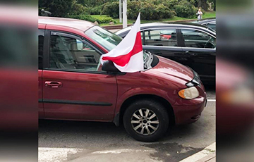 В центре Минска гаишники остановили машину с бело-красно-белым флагом