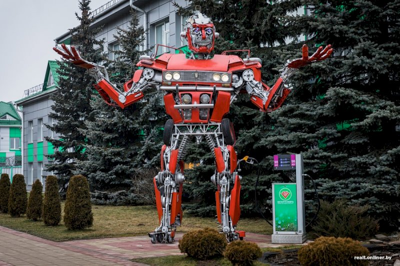 — Этот человек где-то увидел робота, которого я сделал из старых «Жигулей», купленных за сто баксов. Он захотел себе нечто похожее, но только в других масштабах. Поскольку он занимается продажей здоровенных автомобилей, он хочет поставить металлическую громадину высотой метров под двадцать. Весной договорились встретиться и обсудить все детали. Если договоримся, поедем к нему всей командой, — рассказывает наш собеседник. — Я ценник опускаю очень низко. Любая моя скульптура в Европе продалась бы в десятикратном размере.