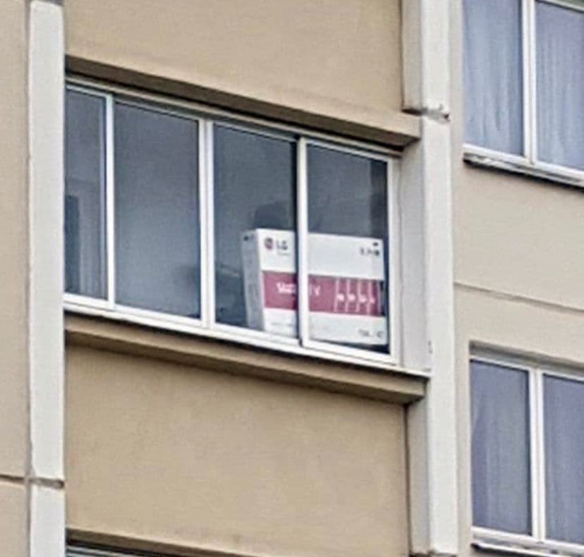 В данном случае житель столицы поставил коробку от телевизора компании LG, чтобы высказать свое мнение.