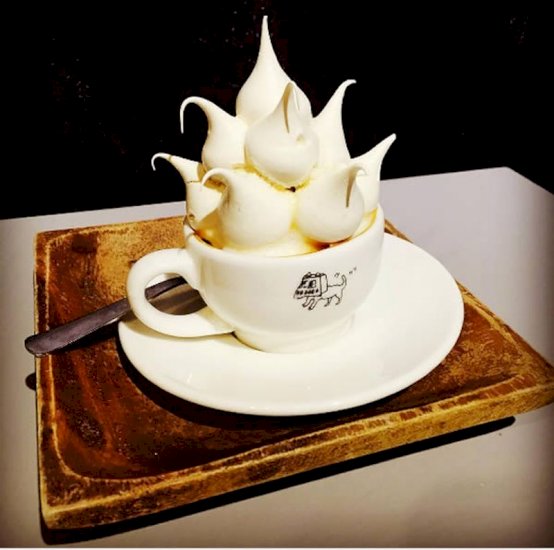 В кафе "Take Out Drawing Cafe" в Сеуле подают эспрессо, украшенное меренгой. Меренга не тает, поэтому клиенты могут отрывать от нее кусочки и макать их в кофе. Как вы, наверное, уже догадались, меренговый кофе стал хитом Instagram.