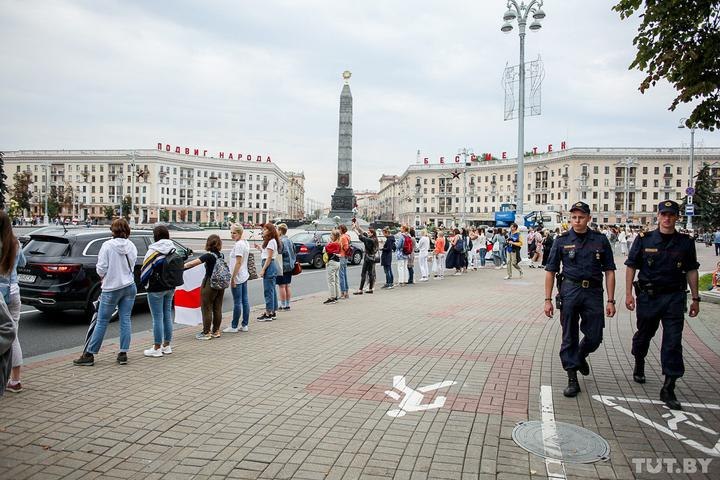 На площади Победы в Минске выстроилась цепь солидарности