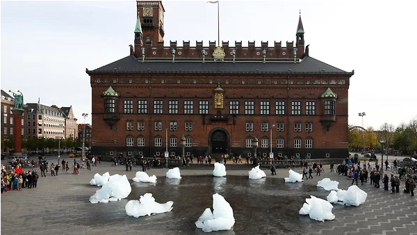 В 2014 году датско-исландский художник Олафур Элиассон выложил на главной площади Копенгагена 12 ледяных глыб весом от 1 до 6 тонн. Все они откололись от Гренландского ледяного щита (одного из двух полярных щитов Земли) и были выловлены художником вместе с геологом Миником Розингом у берегов Гренландии. Усилившееся в связи с глобальным потеплением таяние ледника в Гренландии давно вызывает беспокойство ученых: по некоторым прогнозам он может полностью растаять в течение 1000 лет, что кардинально изменит климат Земли.