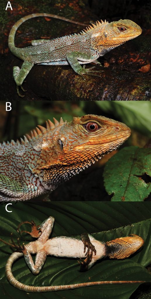 Новый вид отличается формой чешуи, а еще черным пятном в области глотки. Чешуйки за надбровными дугами ящерицы увеличены и заострены, она имеет довольно большой гребень на спине. Животные живут на кустах и деревьях на высоте от 20 до 150 сантиметров над землей.