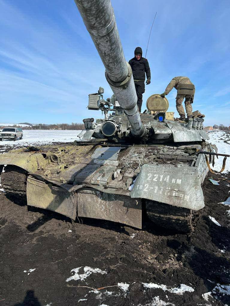 13:12 Российская колонна разбита, а абсолютно исправный Т-72 захвачен в ходе контратаки на северном направлении. Техника зашла на территорию Украины из Беларуси.