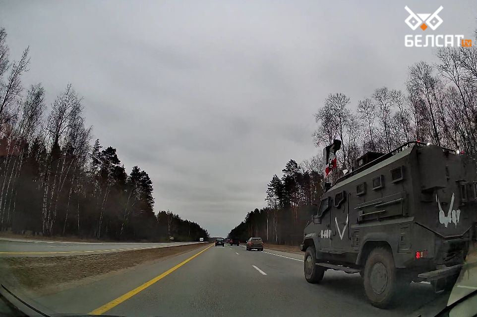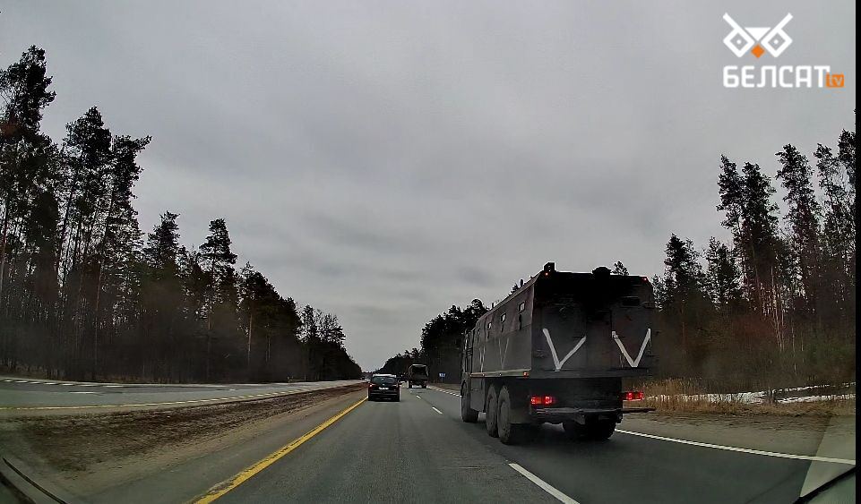 00:30 Сегодня на трассе Кобрин- Гомель в сторону Гомеля было замечено около 15 грузовых авто с солдатами, БТР, около 5 броневиков и столько же пикапов и джипов с буквой V и, предположительно, чеченских флагами.