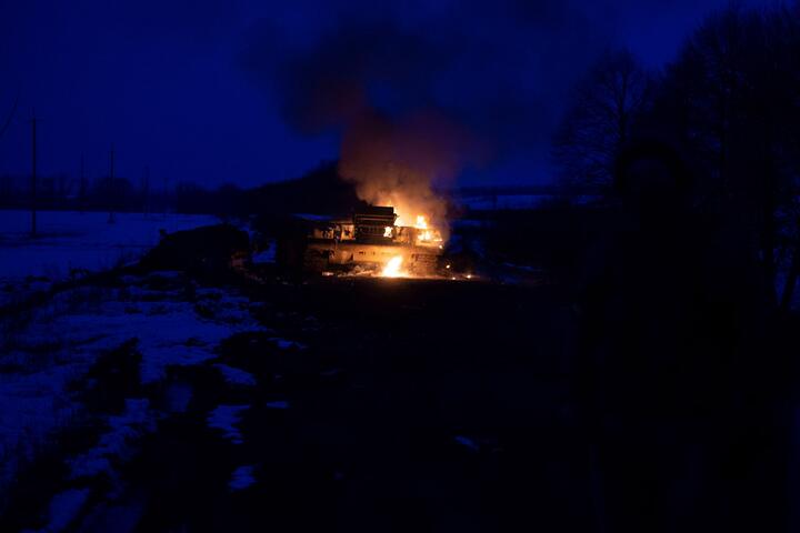 Горящий российский танк в Сумской области, 7 марта 2022 года