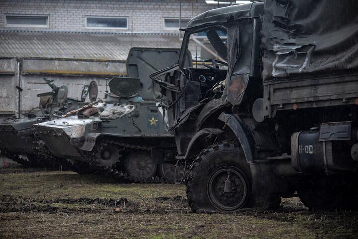 Уничтоженная российская военная техника в поселке Бородянка Киевской области, 3 марта 2022 года