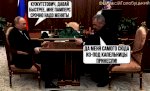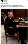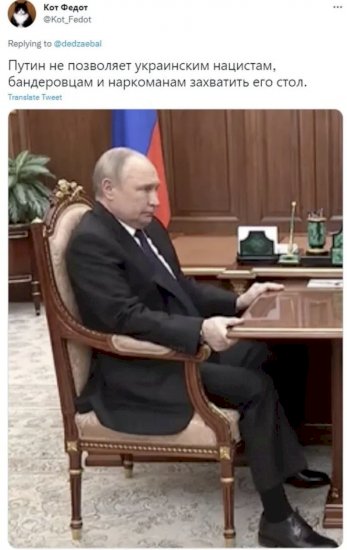 Российский диктатор крепко сжимал крышку стола, вся его поза была неестественной, а правая нога постоянно подергивалась.