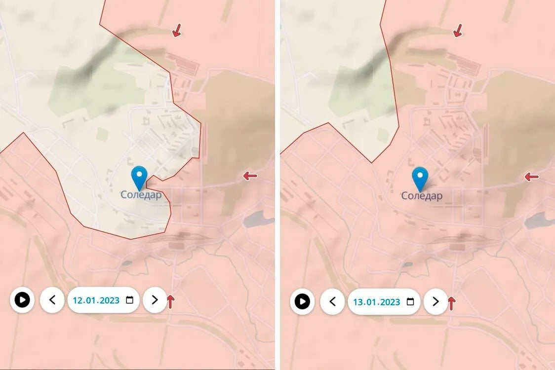 Ранее Генштаб ВСУ опубликовал официальную информацию о ситуации в Соледаре. Были приведены карты, по которым видно, что украинские войска контролируют 35% территории города.