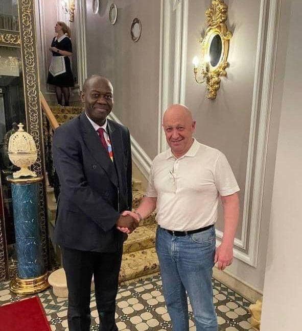 Фотографию опубликовал в сети глава Русского дома в Центральноафриканской Республике Дмитрий Сытый. На ней Пригожин жмет руку представителю африканской страны.