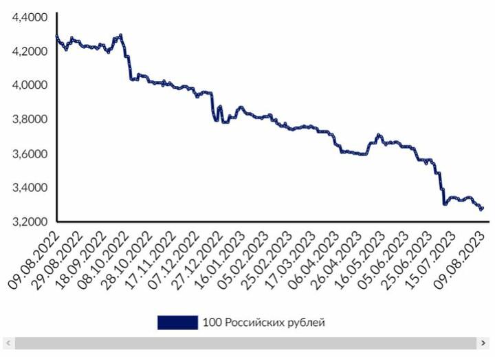 Но еще более впечатляющим выглядит рост курсов доллара и евро за последний год — по сравнению с 9 августа 2022-го. Так, курс американской валюты по Нацбанку на эту дату составлял 2,5843 рубля, а сейчас — 3,1513 рубля. Рост — на 22,1%.