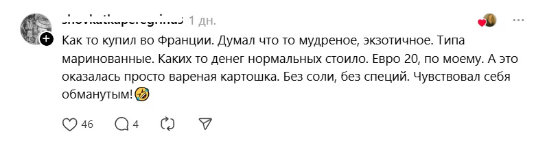 Часть комментаторов заметила, что для кого-то консервированная картошка – не экзотика, а давно известный опыт.