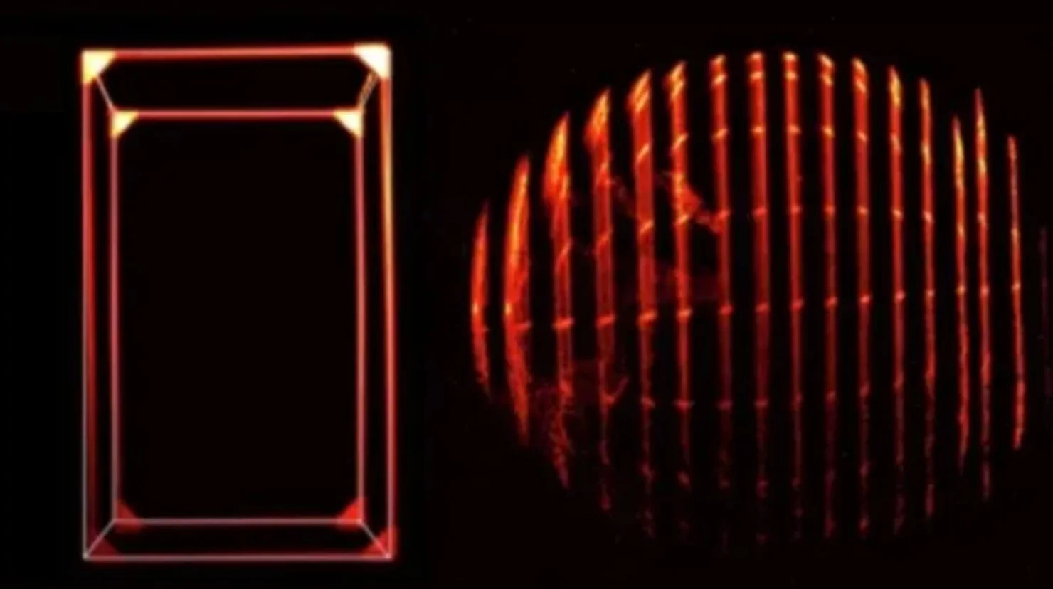 Поэтому физики решили имитировать движение объектов на скорости света. Они взяли куб со стороной около 1 метра. Затем они направили на куб лазеры, каждый длительностью всего 300 пикосекунд, или примерно одной десятой миллиардной секунды. После этого ученые улавливали отраженный свет камерой с затвором, которая открывалась только на мгновение и каждый раз создавала тонкий "срез".