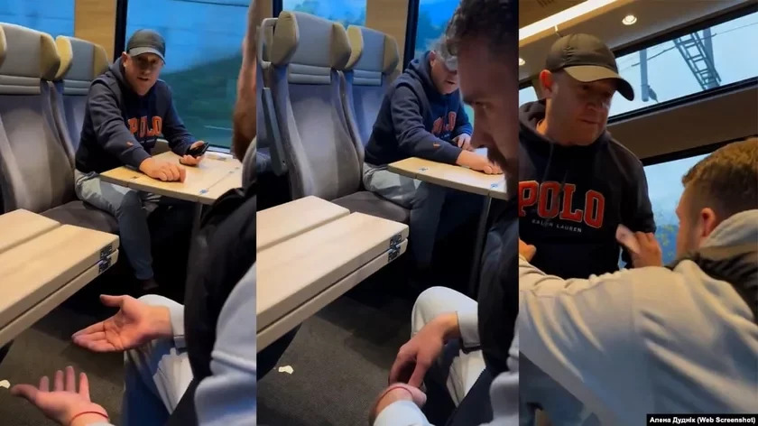 «Мы ехали поездом, зашли в вагон, поставили коляску, сын у меня был на руках, я начал искать место, чтобы сесть. После мы сели, жена попросила меня по-украински что-то взять. Он это услышал и начал ругаться нецензурной бранью. Жена сразу включила телефон и начала снимать. Я говорил на «Вы», старался его успокоить, показывал ему, что там много туристов, есть дети. Он выбил телефон из рук у жены, встал и я среагировал — оттолкнул его. Жена с ребенком отошли дальше, а я не сдержался и пару раз дал по шее», — рассказывает Габриэль.