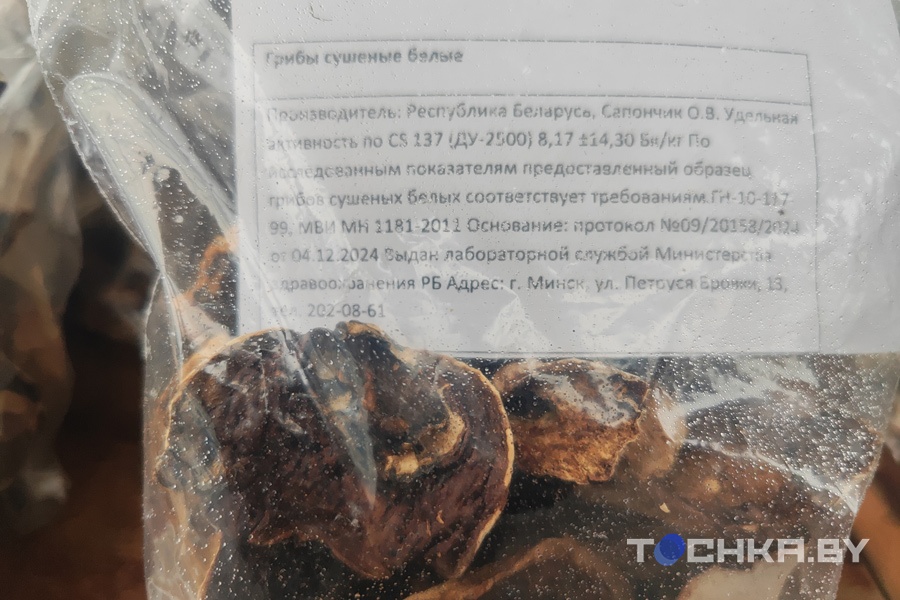 Так, сушеные боровики стоят Br450 за кг. Судя по информации о грибах, они прошли специальный контроль. Превышений радиоактивных веществ не обнаружено. Что интересно, в лабораторию их сдавали еще 4 декабря 2024 года.