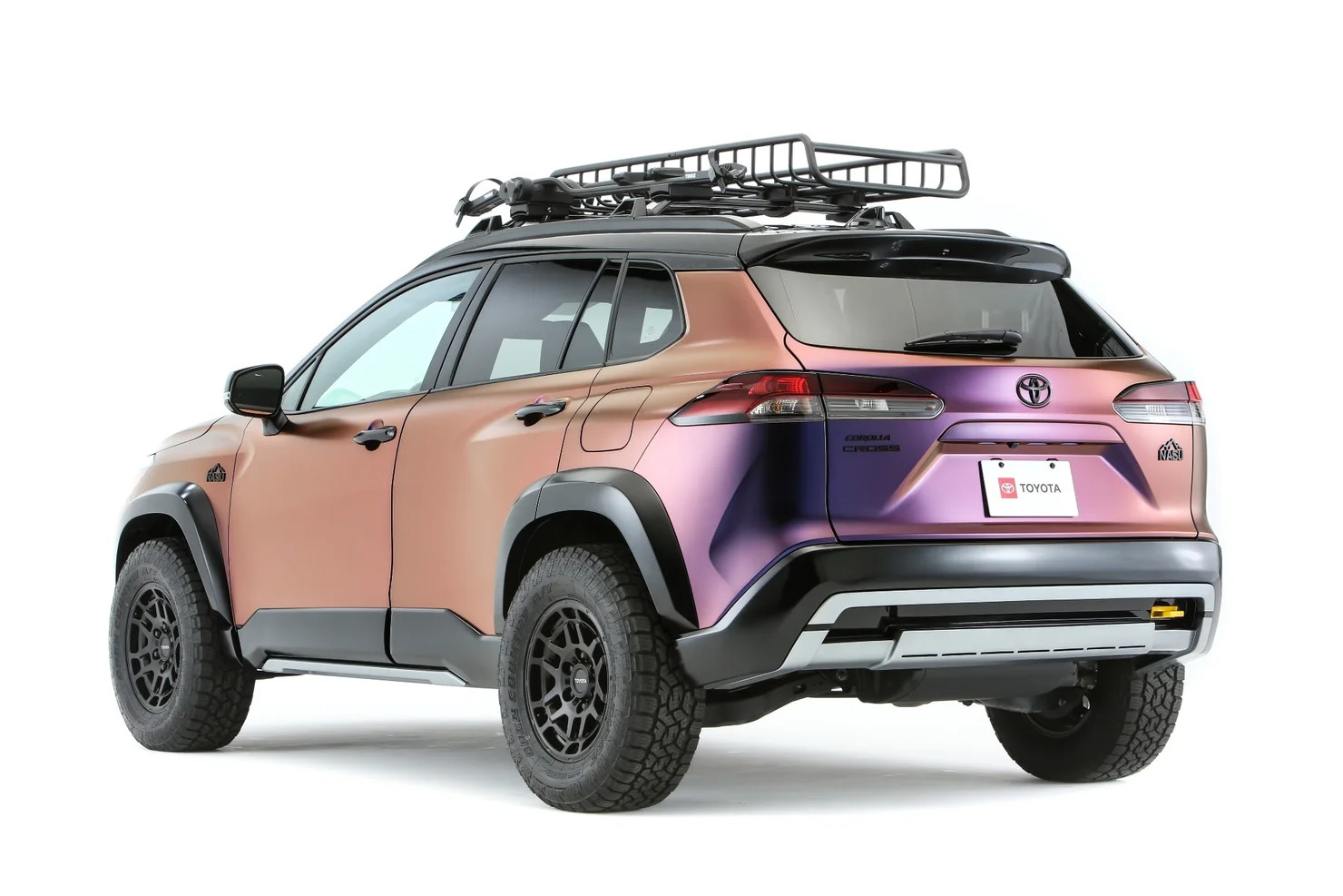 Toyota Corolla Cross превратили в полноценный внедорожник. Автомобилю серьезно увеличили клиренс, заменили бамперы, добавили массивный пластиковый обвес и внедорожные шины размером 255/65 R16.
