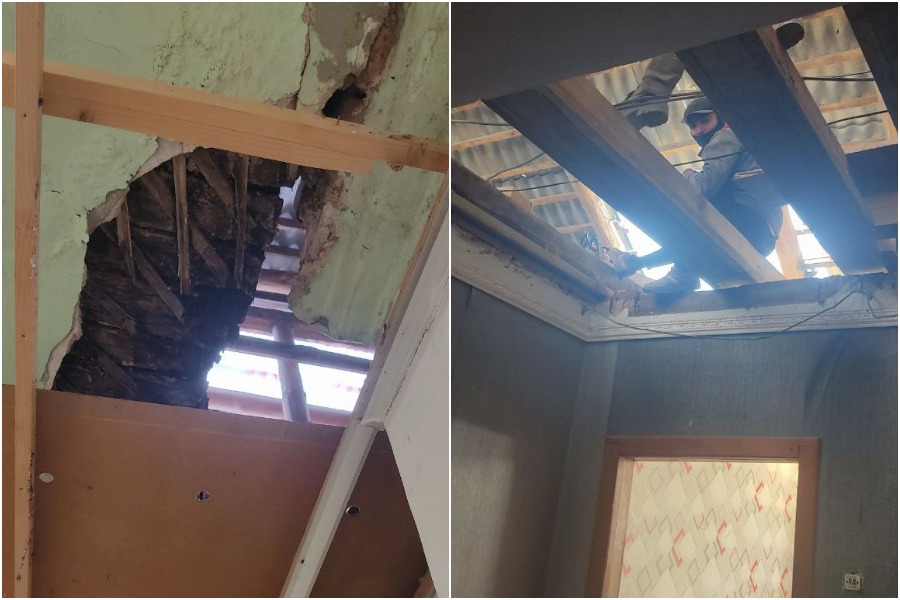 В комнате, где раньше был хороший ремонт, пришлось снять натяжные потолки и смириться с набитым наспех гипсокартоном и дырами в дорогих обоях.