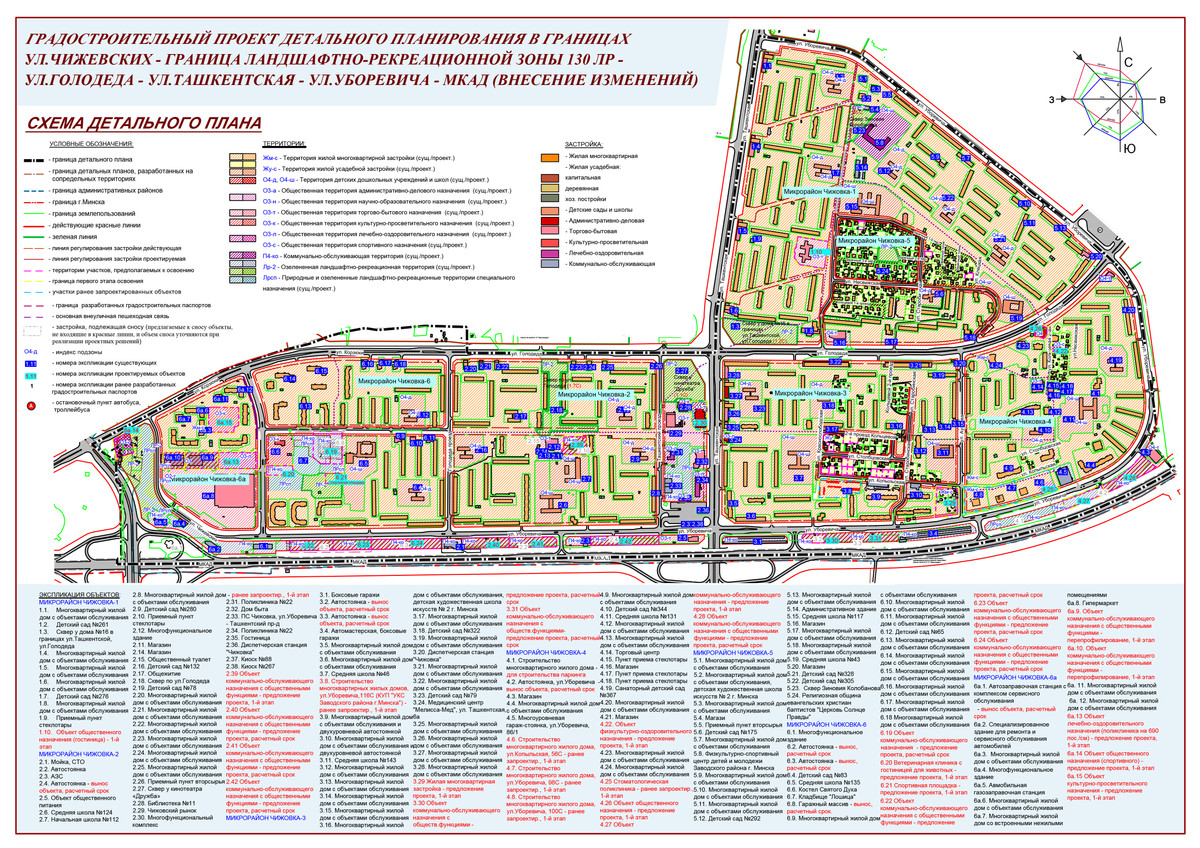 Изменения могут коснуться довольно большой территории в границах улицы Чижевских, ландшафтно-рекреационной зоны 130 ЛР, улиц Голодеда, Ташкентской, Уборевича и МКАД. В проекте уточняются границы участков и их назначение, а также предлагаются новые варианты застройки: немного жилья и очень много социальных объектов.