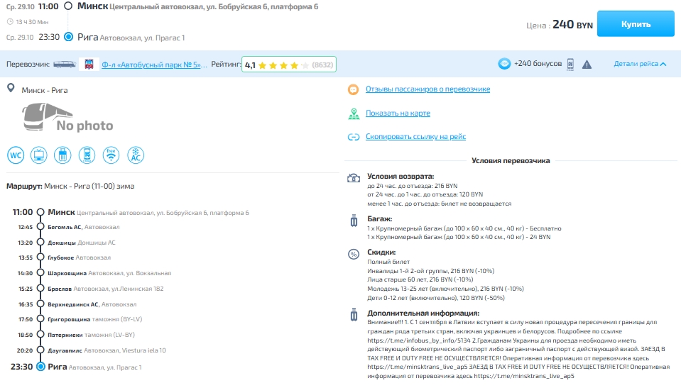 Что происходит с билетами на автобусы из Беларуси в Латвию и Польшу