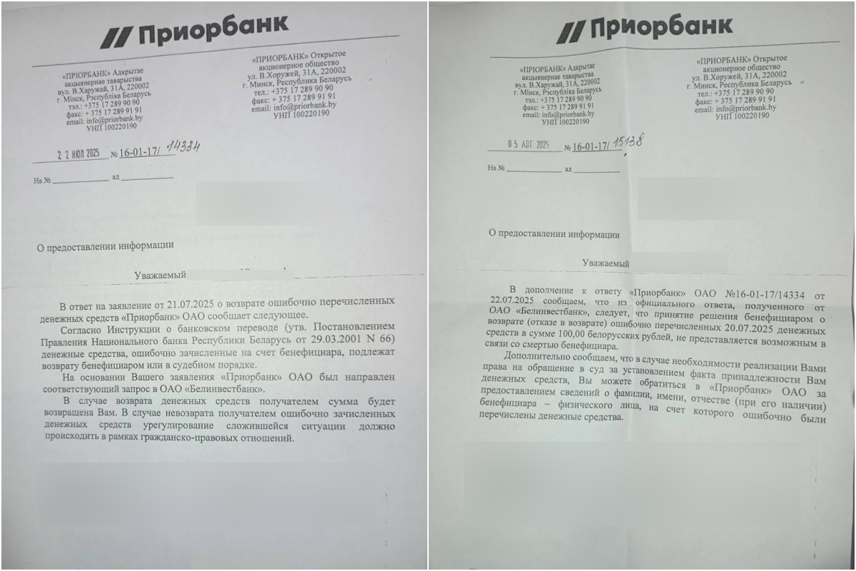 В августе мы рассказывали историю Алексея, который перевел 100 рублей с банковской карты на свой кошелек «Оплати» в Белинвестбанке, но допустил ошибку в реквизитах. Деньги ушли другому человеку, в чеке были указаны только имя и отчество, и выяснить, кто именно получил перевод, сразу не удалось.