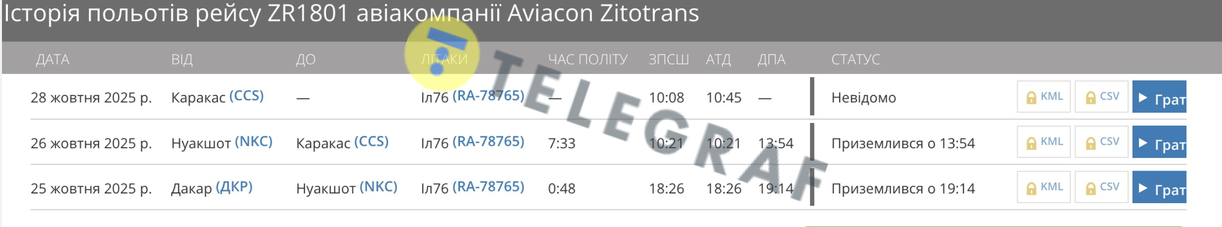 Ил-76 может перевозить до 50 тонн груза или до 200 человек. Оператором этого борта является компания Aviacon Zitotrans, которая находится под санкциями США, Канады и Украины из-за связей с российскими военными структурами, включая неоднократные поставки оборудования в регионы действия наемников ЧВК «Вагнер».
