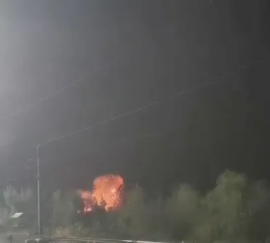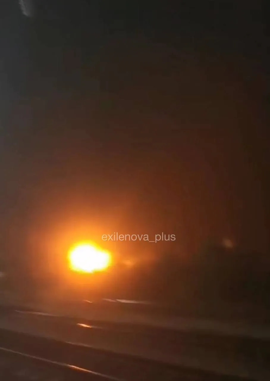 На видео, которые распространяются по сети, можно услышать шум от БПЛА, а затем серию взрывов, в результате которых на объекте начался пожар.