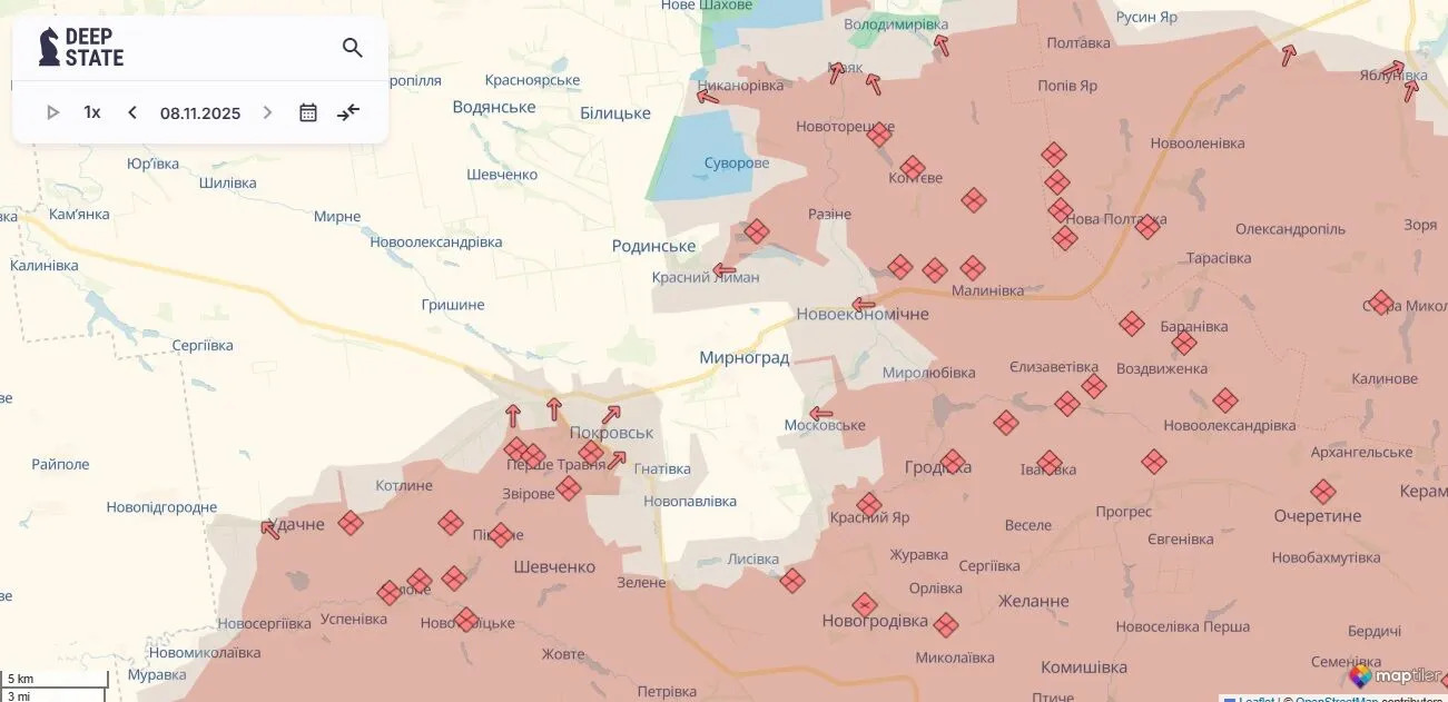 Ситуация на этом участке фронта остается крайне сложной. И эта сложность обусловлена не только инфильтрацией, но, в первую очередь, попытками противника бить по нашим тылам. То, что мы частично смогли расширить, разжать клещи оперативного окружения в районе Родинского и в населенном пункте Перше Травня на юго-запад от Покровска, в определенной степени дает нам возможность перевести дыхание.