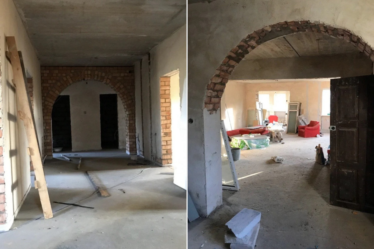 Дом построен в 1999 году из блоков и облицован кирпичом, крыша — из металлочерепицы. Внутри — черновая отделка, что позволит будущему владельцу сделать интерьер по собственному вкусу. Будет это предсказуемое решение в виде лепнины и позолоты или нечто неожиданное в виде брутального лофта, решать только новому хозяину. Ясно одно: вложиться в ремонт нужно основательно — все-таки площадь у жилья немаленькая.