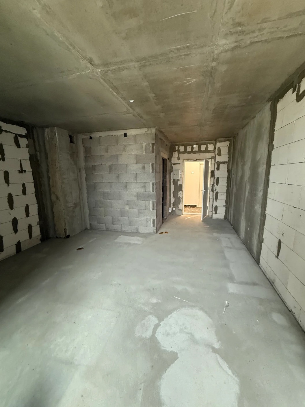 Речь идет о типичной «бетонной коробке»: голые стены, черновая стяжка, ни сантехники, ни кухни. Фактически пространство, где можно жить только при наличии фантазии и нескончаемого оптимизма.