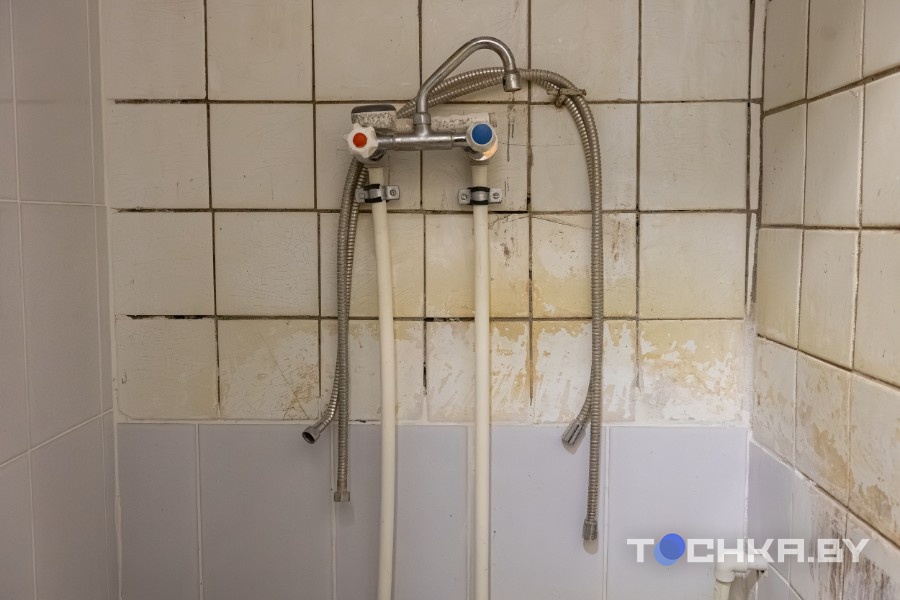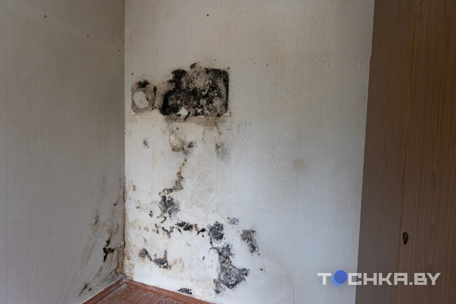 За стенкой спальни у Мурата — душевая комната. А на стене — огромное черное пятно плесени. Сырость нереальная.