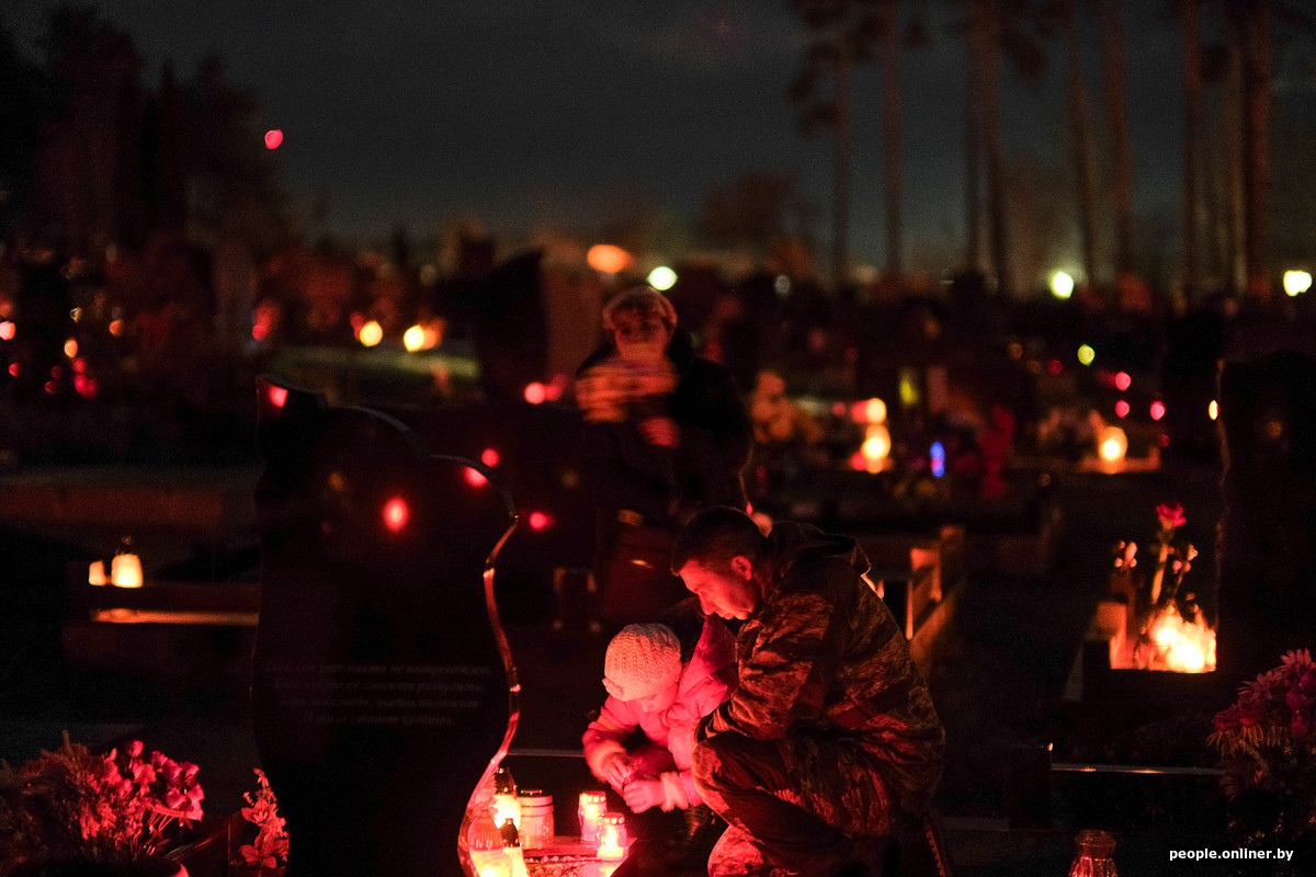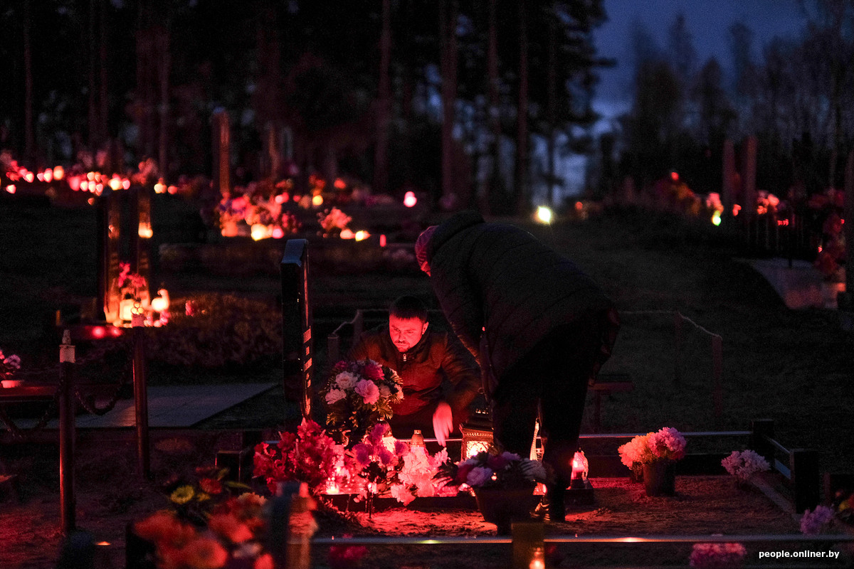 У Івянцы многія пайшлі на могілкі паставіць свечкі і лампадкі менавіта ўвечары. Каб было прасцей, людзі асвятлялі сабе шлях ліхтарыкамі і мабільнымі тэлефонамі.
