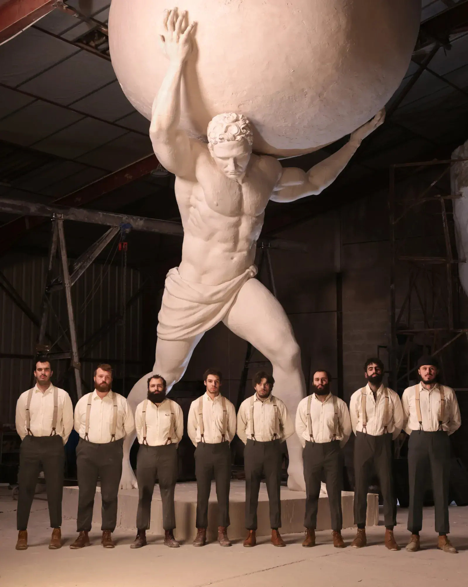 Статуя изображает атланта в набедренной повязке, который несет большой шар. Скульптуры показали большой макет, который уже сейчас демонстрирует их намерения поразить зрителей. По замыслу, статуя будет гигантской - самой высокой в западном полушарии, и выполненной из титана, чтобы пройти проверку временем.