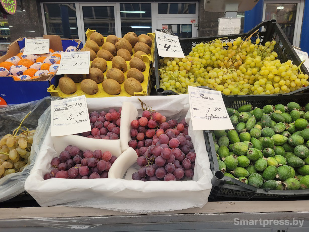 На что больше нацелено внимание покупателей, чем на остатки сезонных овощей, так это на осенние фрукты: фейхоа (7-9 рублей за 1 кг), виноград (цены разнятся от 3 до 10 рублей за 1 кг), гранаты (от 3,9 рублей за 1 кг), обилие цитрусовых и хурмы (от 5 до 15 рублей за 1 кг).