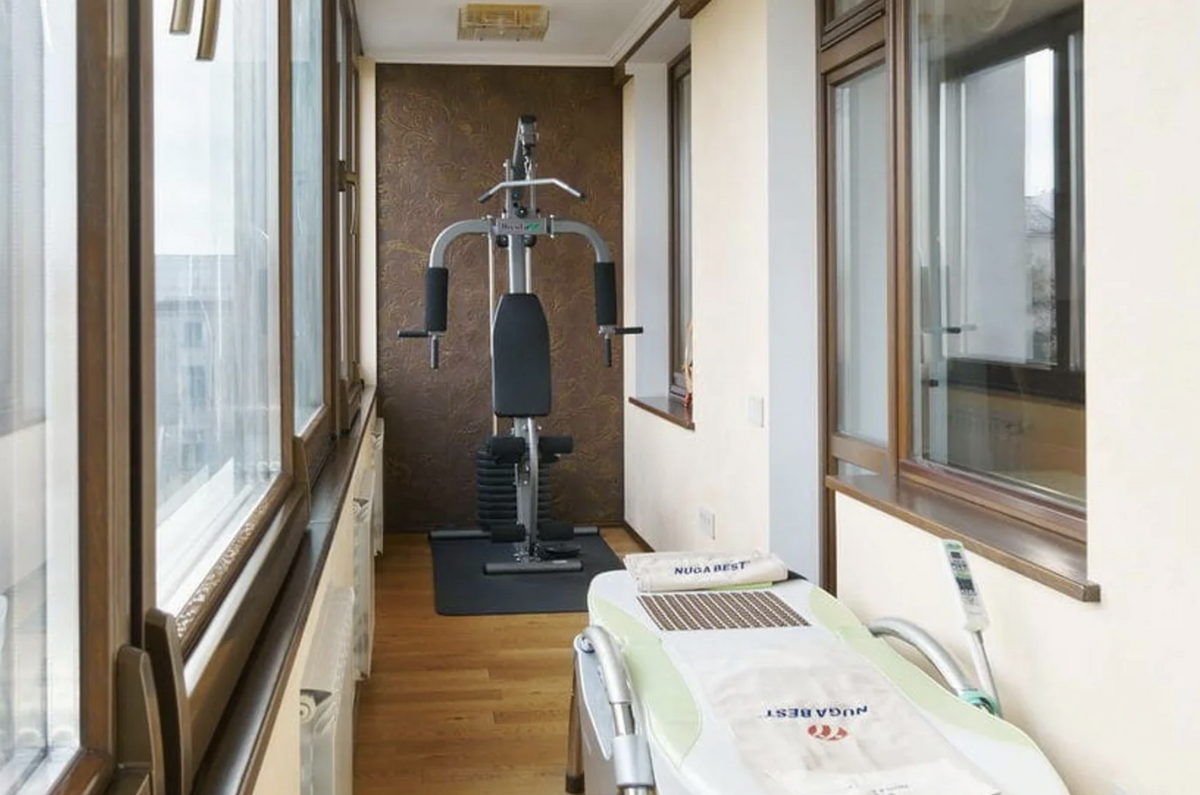 — Спланированы четыре комнаты с большой лоджией c подогревом и панорамными раздвижными окнами. Есть два маленьких балкона с видом на переулок и телебашню. Все помещения просторные, комфортные и наполнены дневным светом.