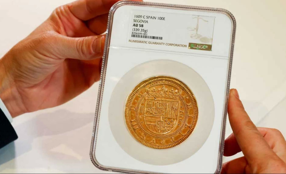 Монета, изготовленная в Сеговии из золота, добытого в Новом Свете, была продана 24 ноября на аукционе в Швейцарии за 2 817 500 швейцарских франков ($3,49 млн).