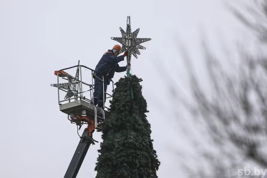 А в Минске в числе первых начали монтировать ёлку в Парке экстремальных видов спорта по адресу улице Столетова. Так, судя по фото, опубликованным изданием sb.by, ёлку монтируют сразу с иллюминацией.
