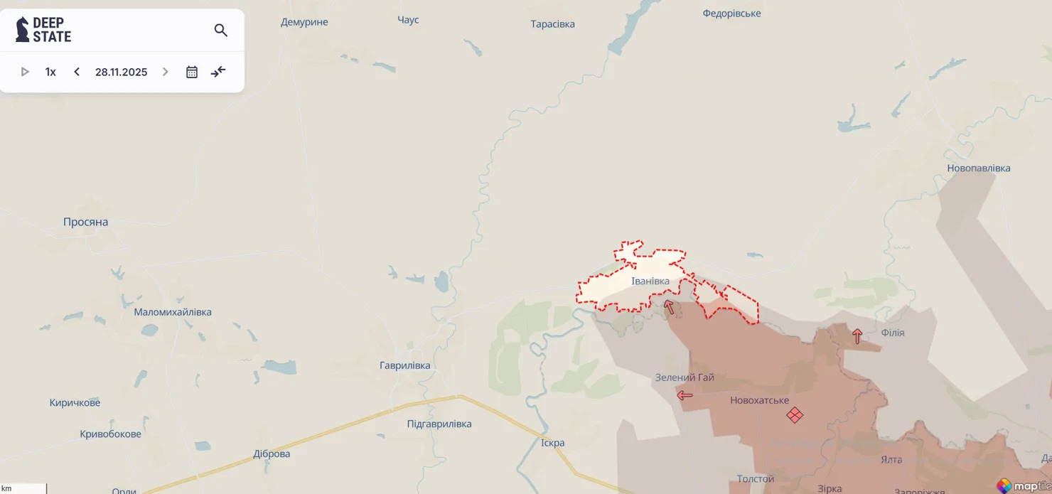 Аналитики также выделили на карте боевых действий территорию села и окрестностей Ивановки, которые зачистили украинские бойцы.