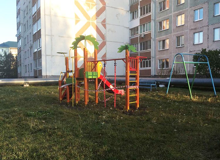 Как оказалось, ленту вновь повязала одна из жительниц близлежащего дома, которая не довольна тем, где установлена площадка.