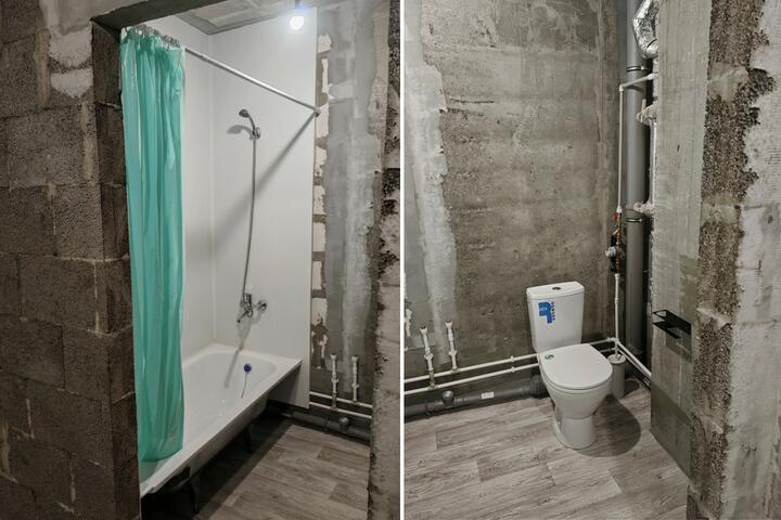 — Без ремонта, но для проживания есть все необходимое, — отмечает автор объявления. — Установлены унитаз, ванна, столешница с мойкой, на полу линолеум, стены прогрунтованы. Розетки все есть и выключатель. В санузле есть трубы и 220 В для подключения стиральной машинки.
