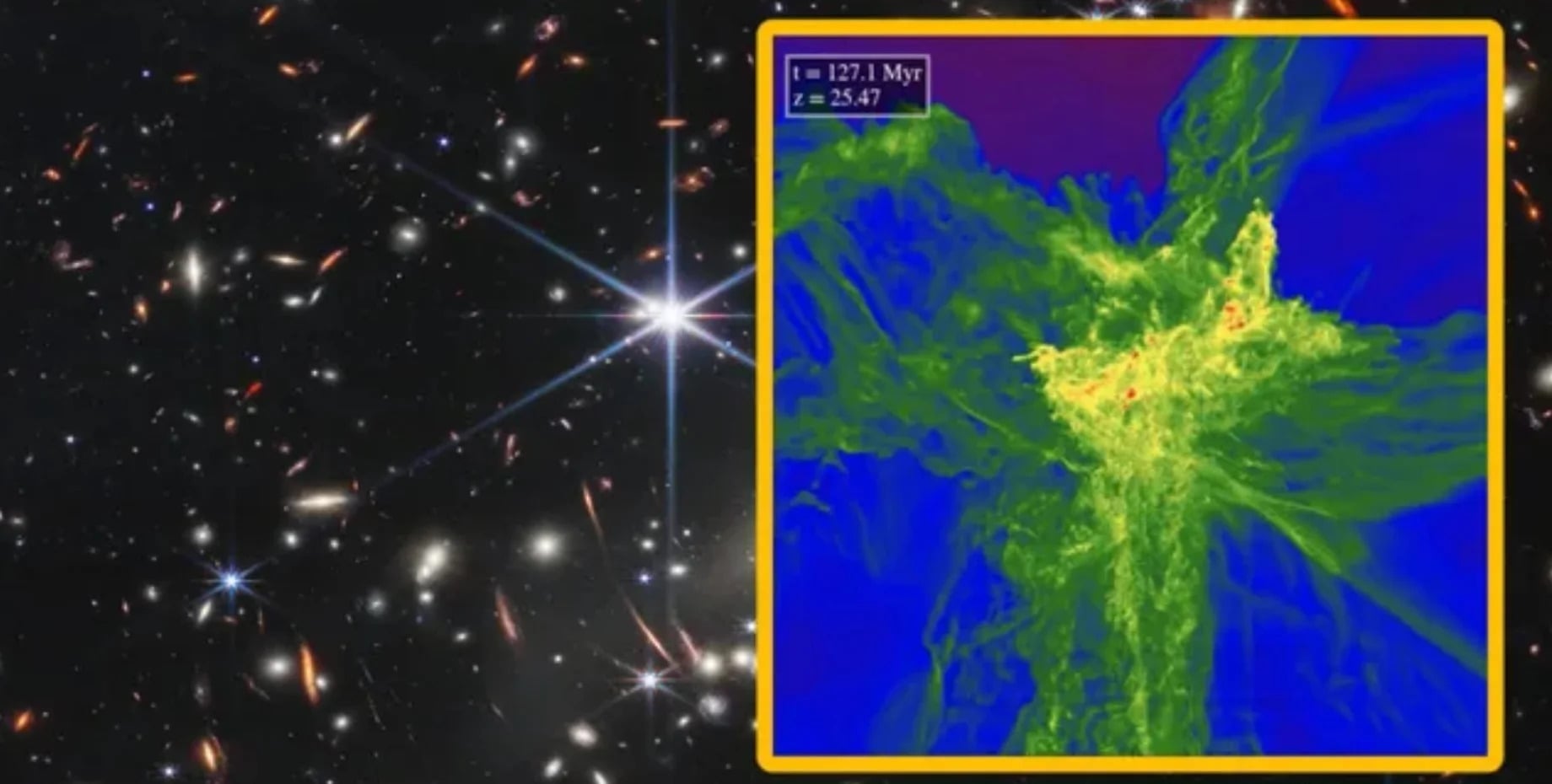 Астрономы с помощью космического телескопа Уэбб обнаружили свидетельства существования «звезд-монстров» в ранней Вселенной. Это дает возможность решить загадку того, как первые сверхмассивные черные дыры выросли до огромных размеров всего за миллиард лет истории Вселенной. Гигантские звезды, обнаруженные в галактике GS 3073, которая образовалась примерно через миллиард лет после Большого взрыва, имеют массу от 1000 до 10000 масс Солнца.