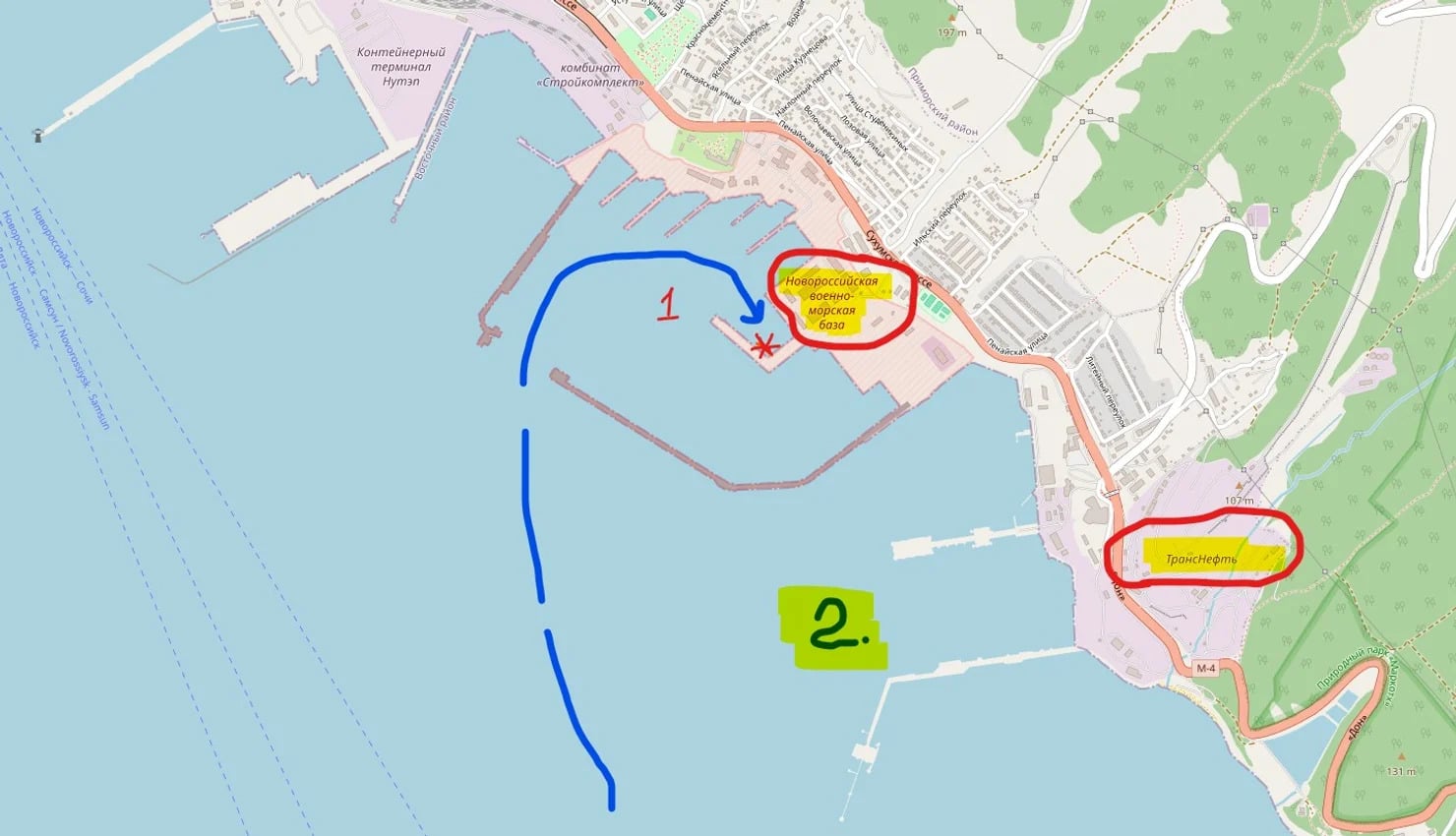 На карте 2 хорошо видно, что Новороссийская ВМБ ЧФ РФ расположена за терминалом «Шесхарис» («Транснефть») — основной на Черном море.