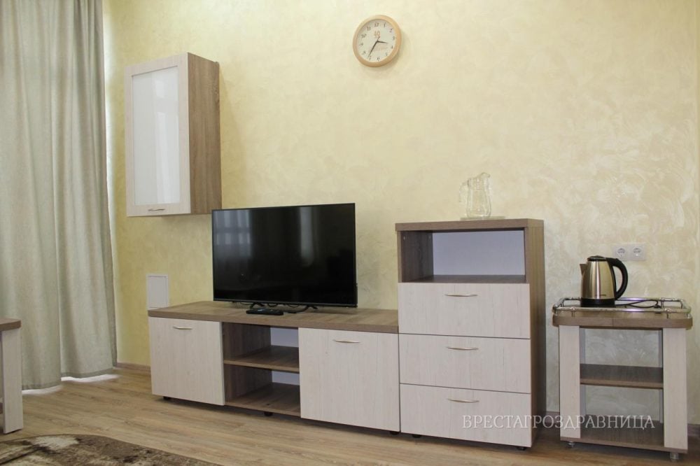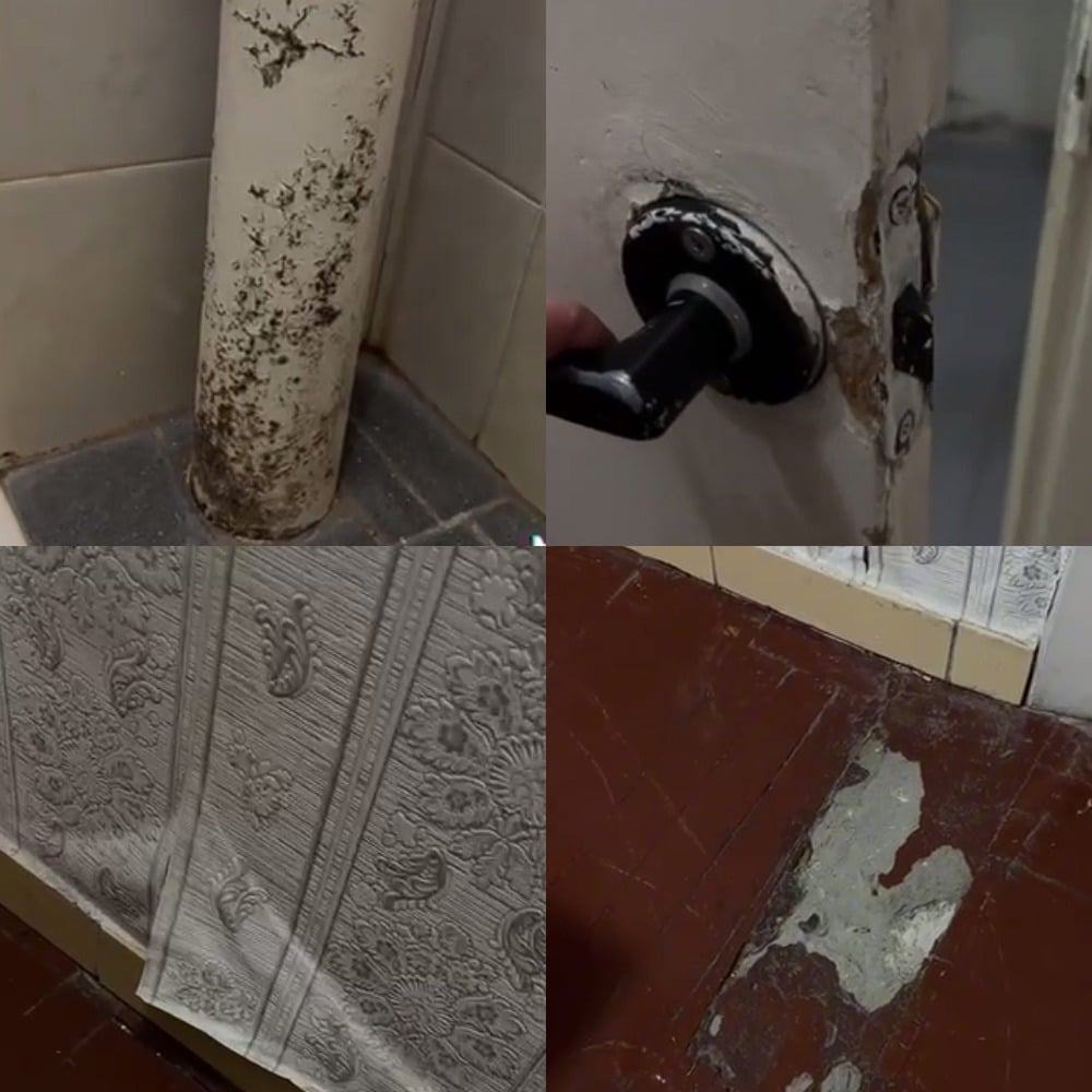 В видеоотзыве, которым поделилась девушка, видно, что номер в «Брестагроздравнице» давно не ремонтировался: обои на стенах отклеиваются, дверные ручки остались будто со времен СССР, шкафы еле открываются, а ламинатное покрытие вообще повреждено. В ванной комнате на трубе можно заметить следы ржавчины.